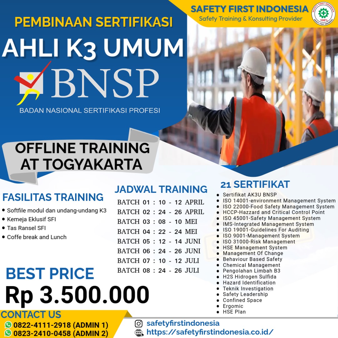 Jadwal Pelatihan Offline Ahli K3 Umum Bnsp Yogyakarta